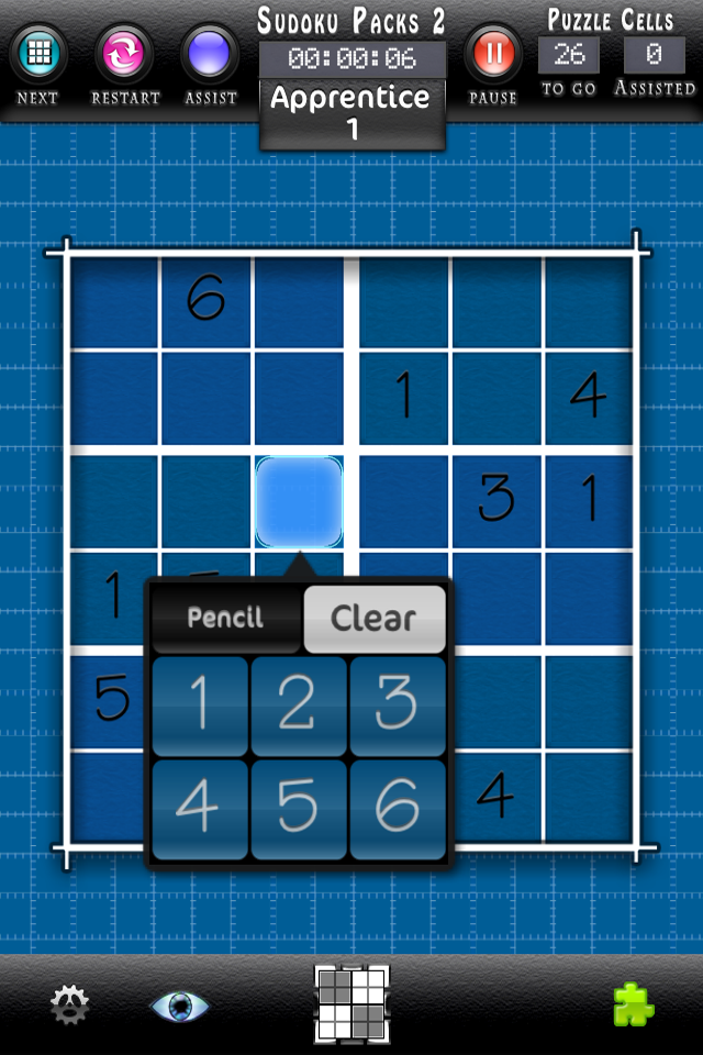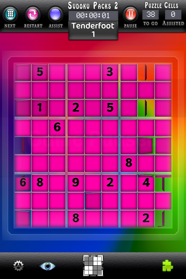 Sudoku Packs 2 features 600 handpicked Sudoku puzzles expanding six progressive difficulty packs. Sudoku Packs 2 is an exhilarating and challenging game for both novice and experienced players. You can play the classic 9 x 9 puzzle grids or venture your way through each puzzle pack.
